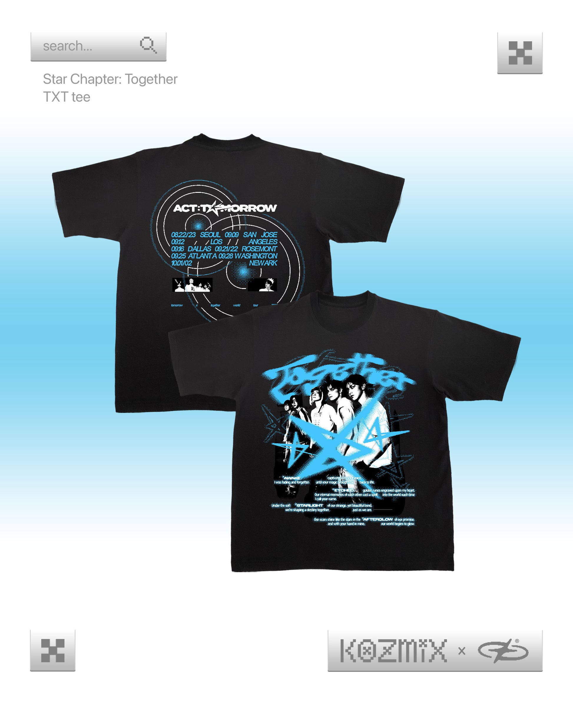 MOAs are we ready for the ACT:TOGETHER tour?! We hope you love this design as much as us!We hope you love this design as much as us. This is printed on a classic fit black shirt with 9.1-oz thick 100% cotton fabric.